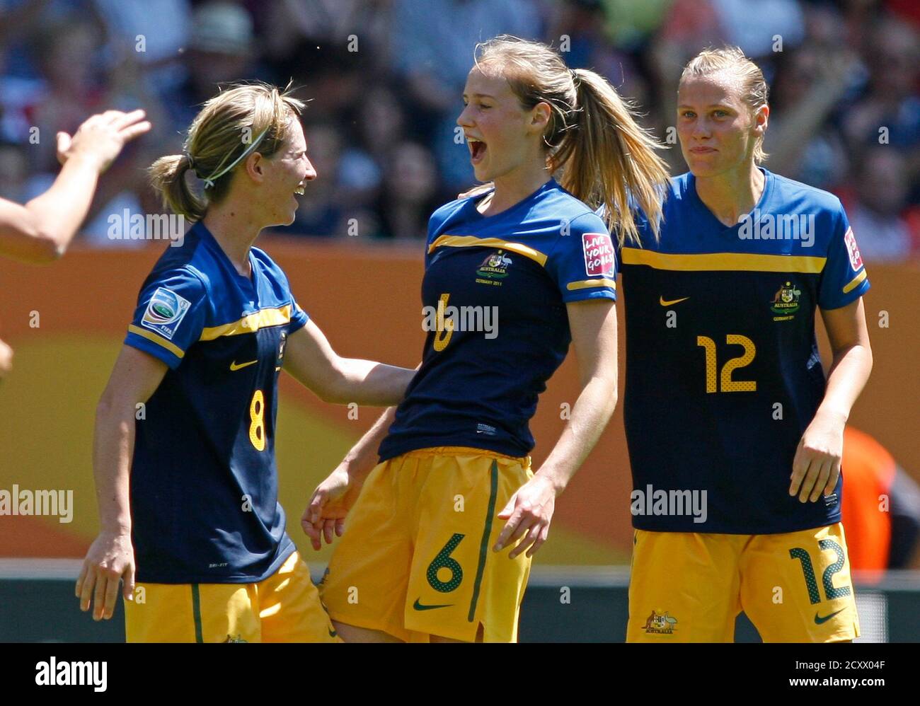 Australia S Ellyse Perry C Celebrates Her Goal Against Sweden With Teammates Emily Van Egmond R And Elise Kellond Knight During Their Women S World Cup Quarter Final Soccer Match In Augsburg July 10 2011 Reuters Ralph