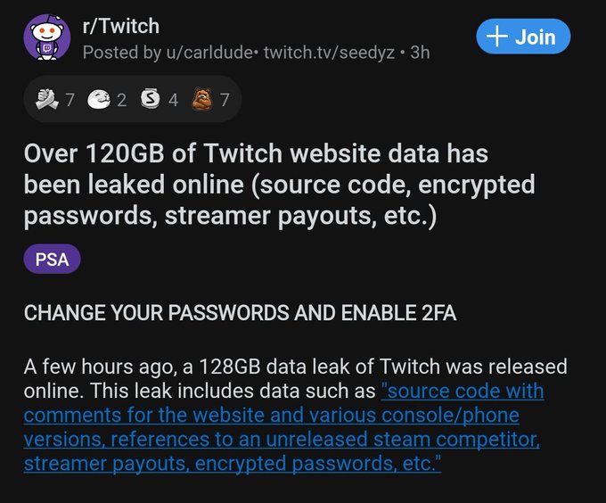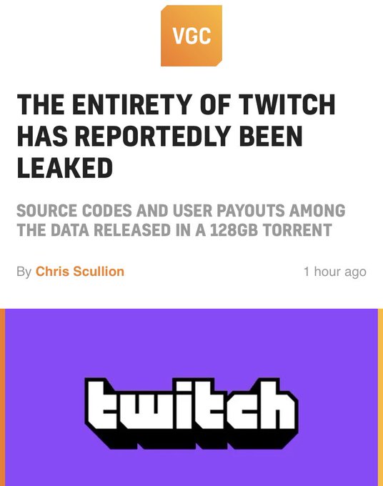Tom Warren On Twitter It Looks Like Twitch Has Been Hacked In A Massive Breach A 125gb File Reportedly Includes Twitch Source Code Details On Creator Payouts And Even A Steam