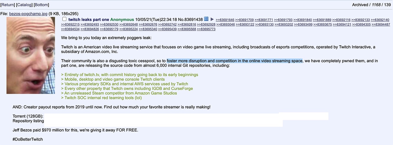 Twitch officially confirmed the data breach on their Twitter account. 1 day ago Twitch Leak Creator Payouts. An anonymous poster on the controversial messaging board.